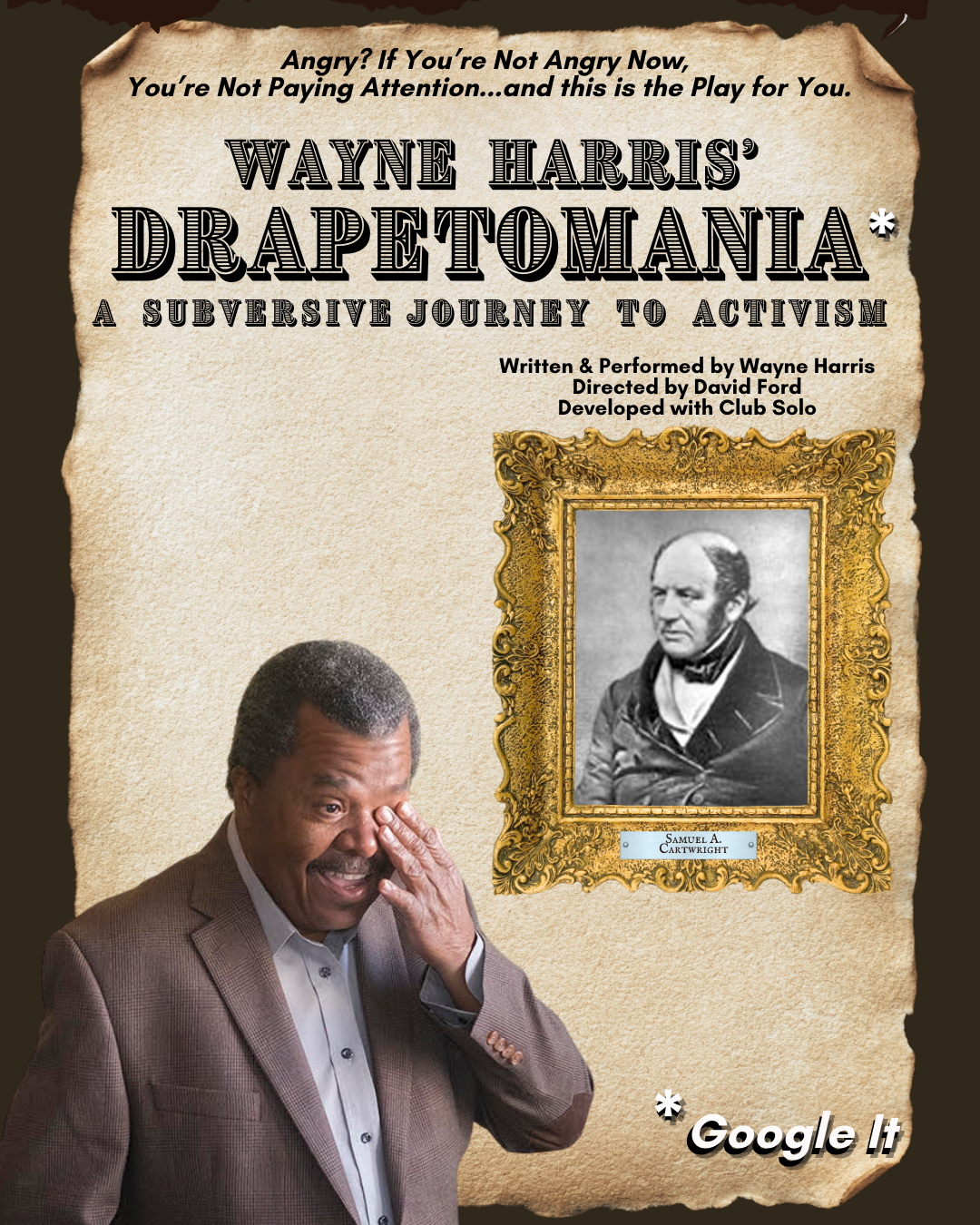 Not many know the term that Wayne Harris chose for the title of his latest solo show: “Drapetomania,” now extended to November 22, at The Marsh, Berkeley. But leaving the theater after the 75-minute performance, the word becomes hard to forget.